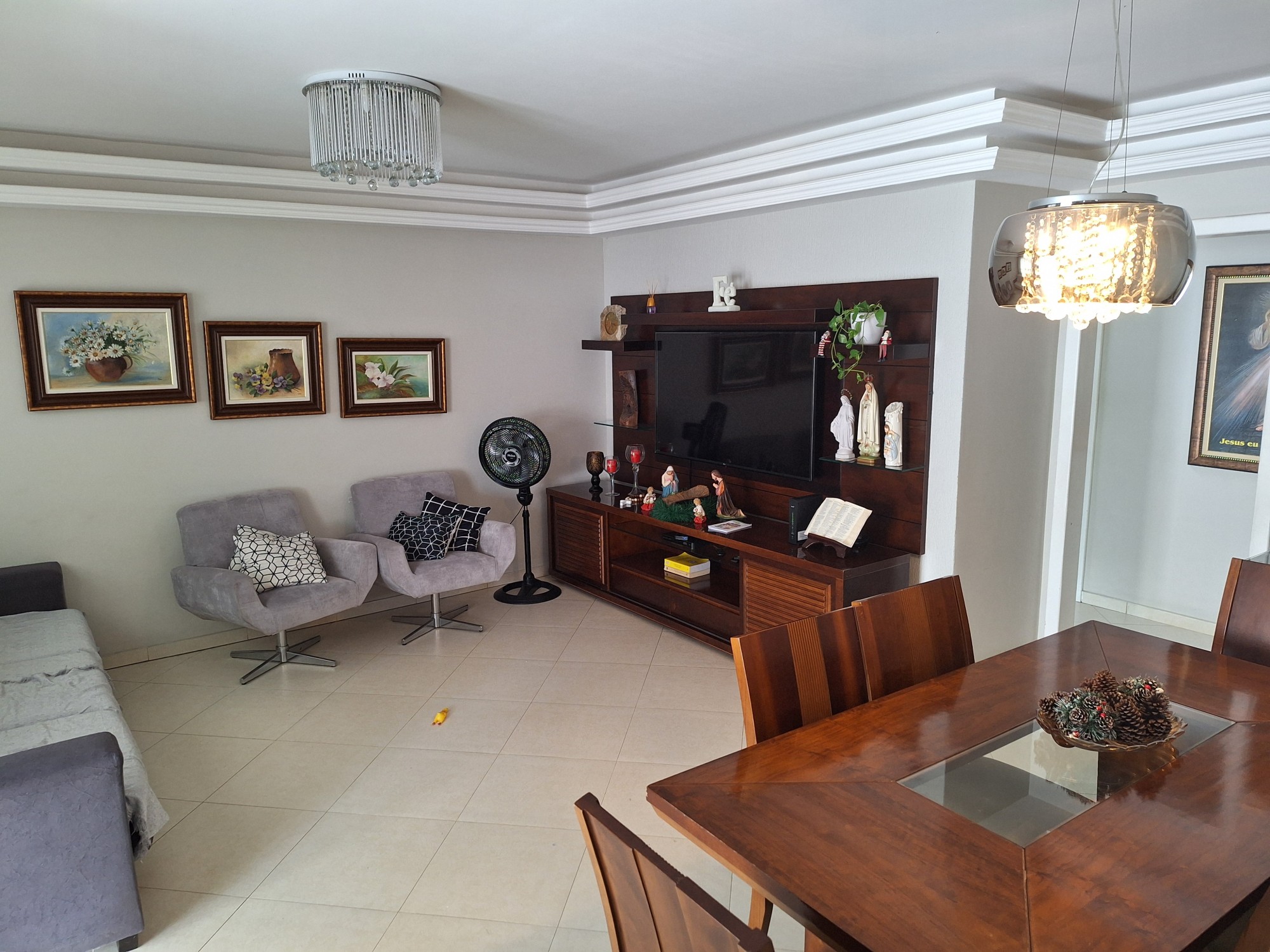 Sala: Ampla sala de estar e jantar integradas, com projeto de iluminação ,oferecendo um ambiente moderno e aconchegante;