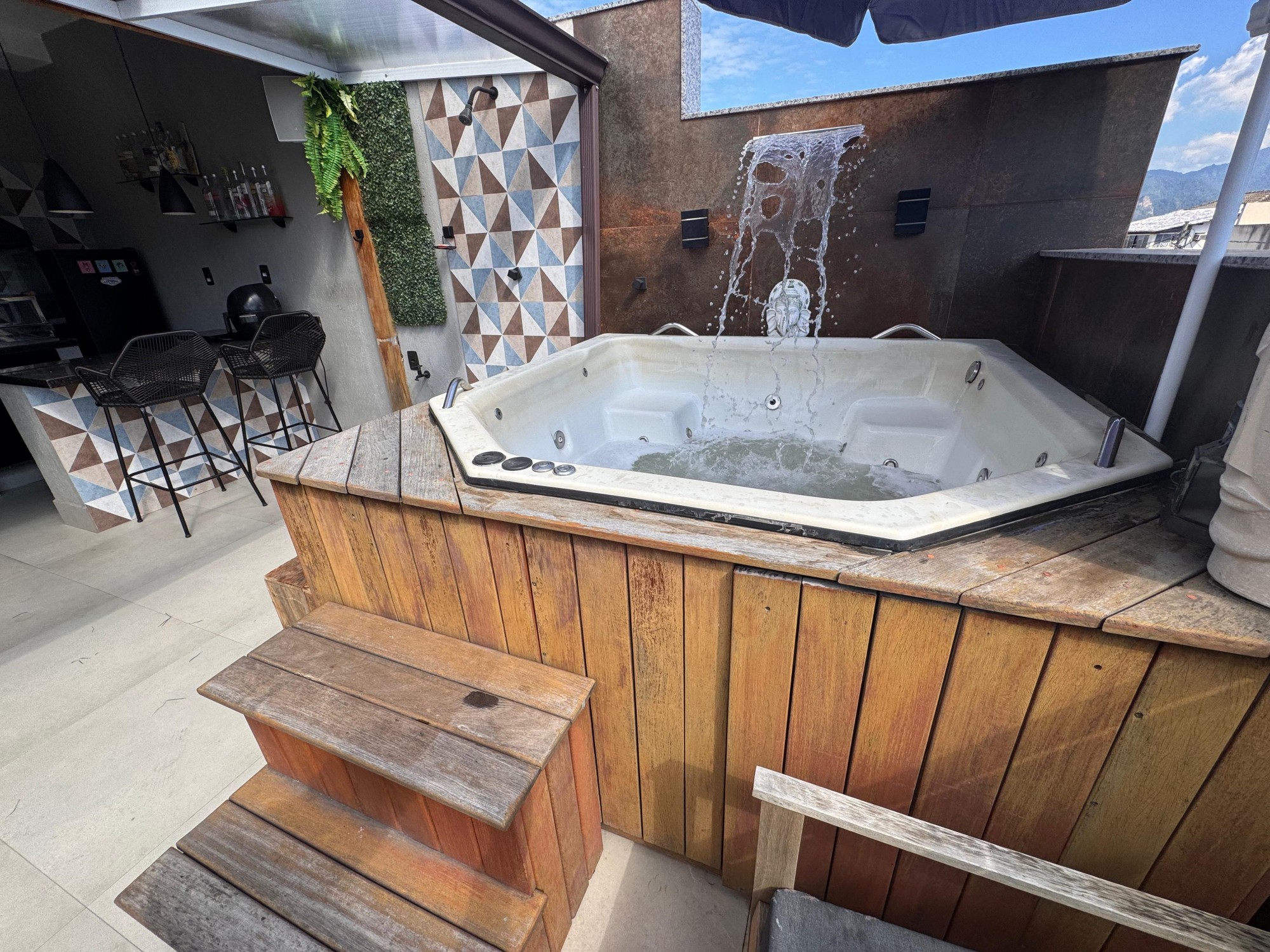 • Hidromassagem com cascata e deck de madeira